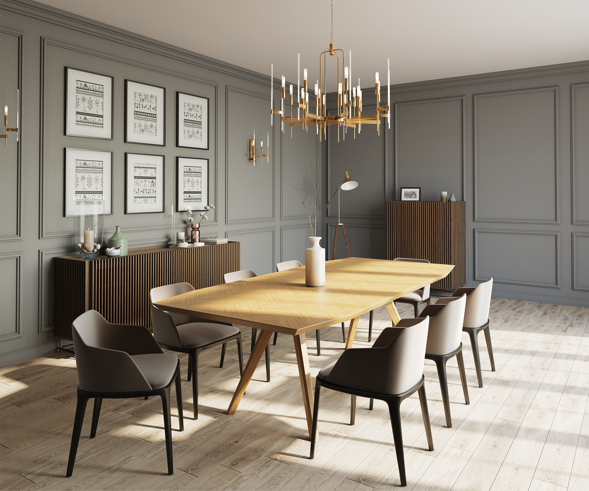 The Dining space is truly based on Indian Values and environment. The Kite Dining Table here, justifies the spirit of togetherness. Inspired by traditional Winnows, the winnow chair is designed to support variety of eating postures providing comfort and ease. And based on the torrential rains, the wood cabinet is an ode to Indian Monsoons.