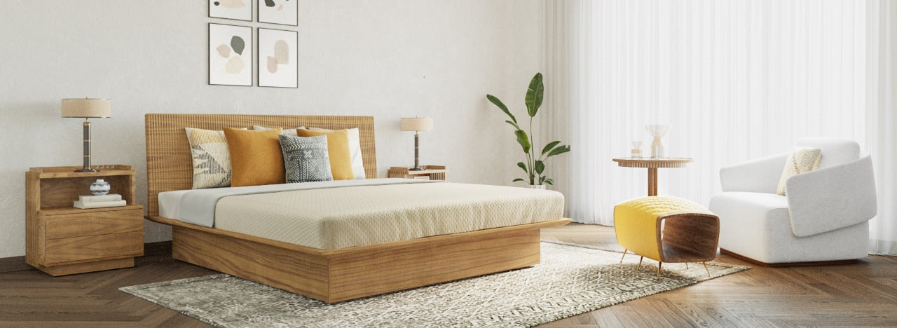 The exquisite beauty of minimalism streamlined into delicate aesthetics to define your bedroom space. The warmth of solid wood in Aagosh bed, the uncluttered ease of Gharonda bed bench, the royal feel reminiscent of bygone era in Gymkhana Chair Ash and intuitive design excellence of Sahej side table gives your bedroom both a touch of convenience and unmatched luxury.